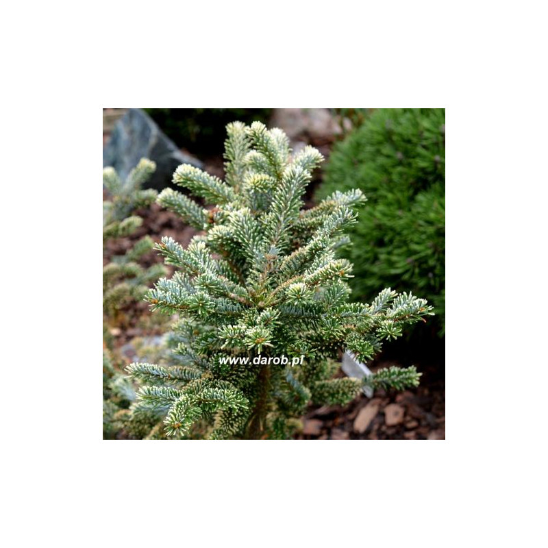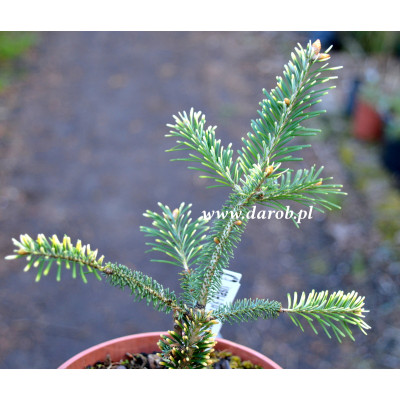 Efektowna odmiana o ciemno zielonych igłach. W kompozycjach roślin iglastych wyróżnia się zarówno barwą igieł ,jak i prawie płaskim pokrojem.